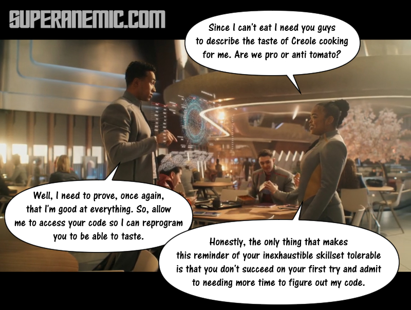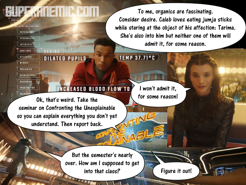 Starfleet Academy S01 E02 – Beta Test January 19, 2026 Click here for a recap of the Tam Elbrun episode, Tin Man THE END Whiny man-child or not, he’s definitely not skipping arm day